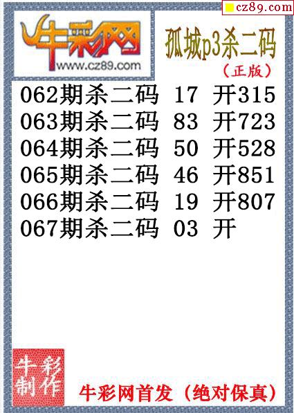 26年067期公孙宇P3杀码图