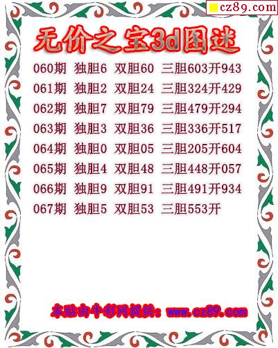 无价之宝送胆2026067期3d图谜(原创)