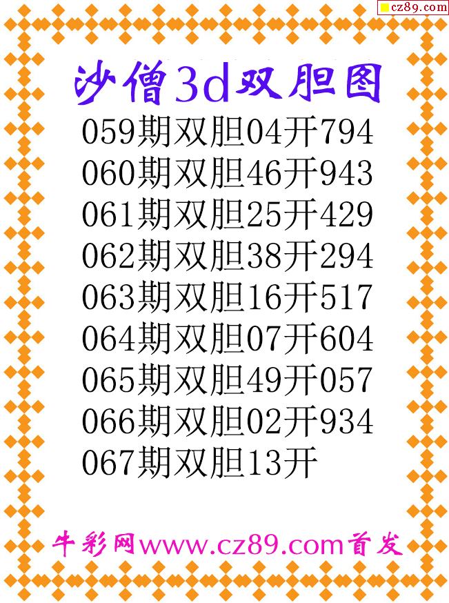 沙僧双胆26067期3d原创图谜