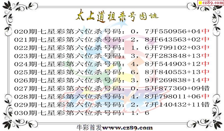 七星彩2026030期太上道祖杀号图谜 10中8