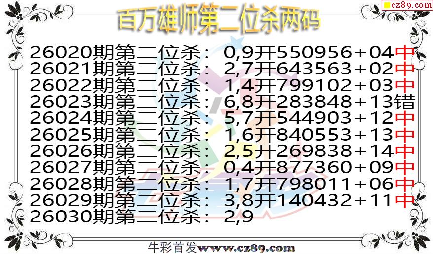 七星彩2026030期百万雄师第二位杀两码图谜 10中9