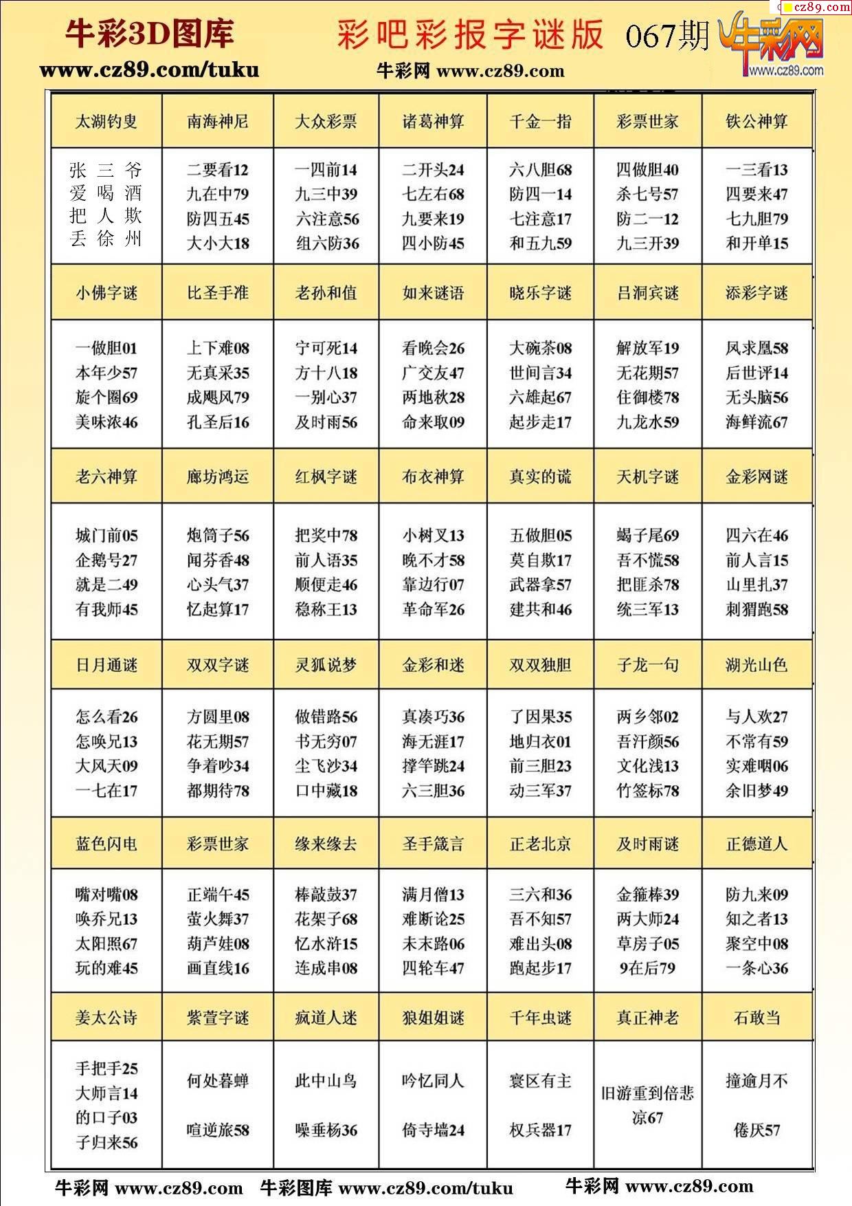 牛彩版3D字谜彩报图26年067期打印版