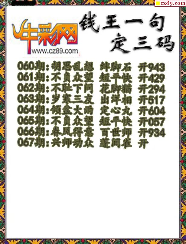 牛彩版3D字谜彩报图26年067期打印版