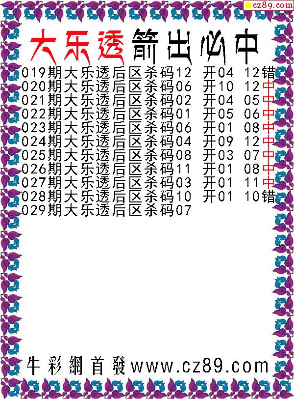 大乐透029期牛彩特邀专家前区后区杀号定胆图表