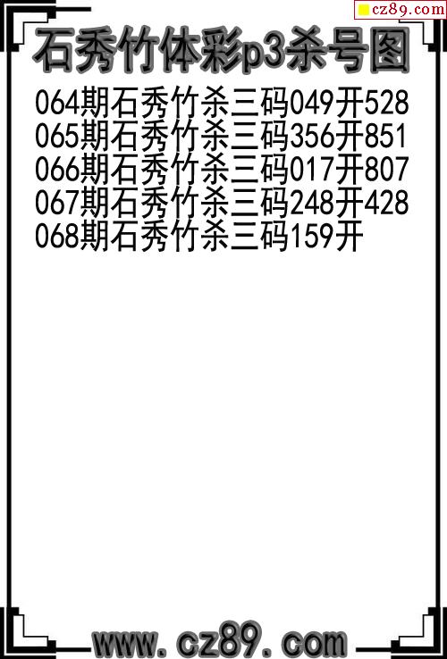 26年068期石秀竹体彩p3杀号图