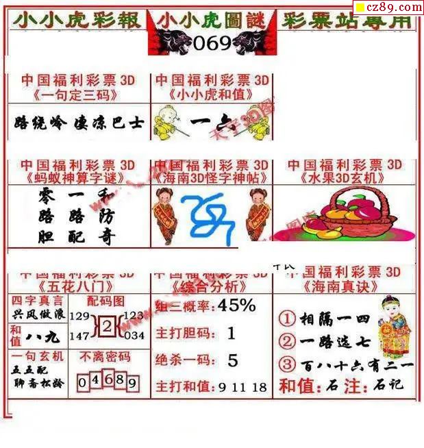 小小虎彩报2026069期3d图谜