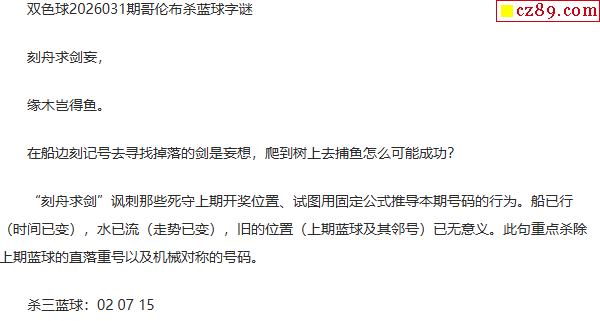 26年福彩双色球031期 哥伦布一句杀蓝球字谜