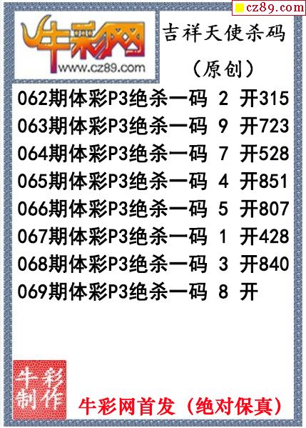26年069期公孙梦体育彩票P3杀码图