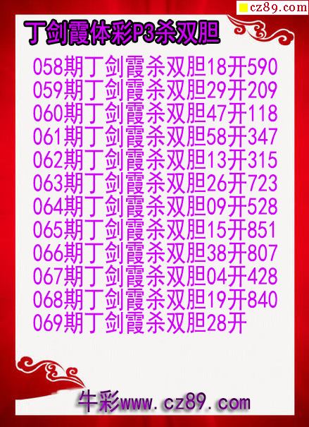 26年069期丁剑霞体彩P3杀双胆图