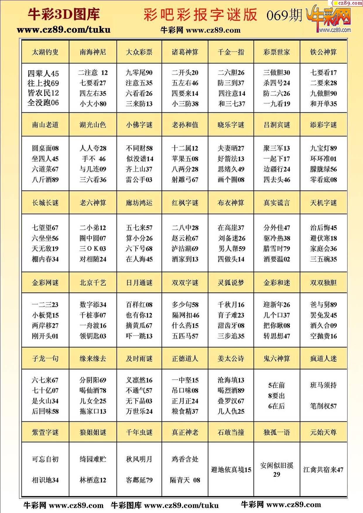 牛彩版3D字谜彩报图26年069期打印版