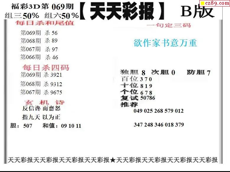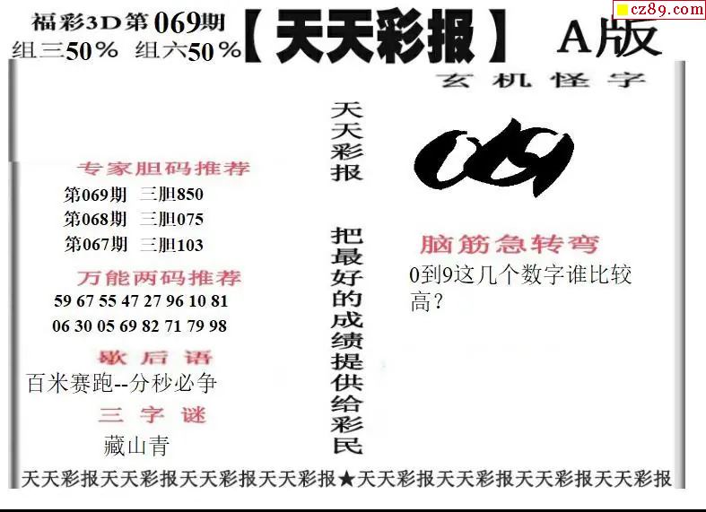 福彩3D2026069期天天彩报A版 天天彩报B版