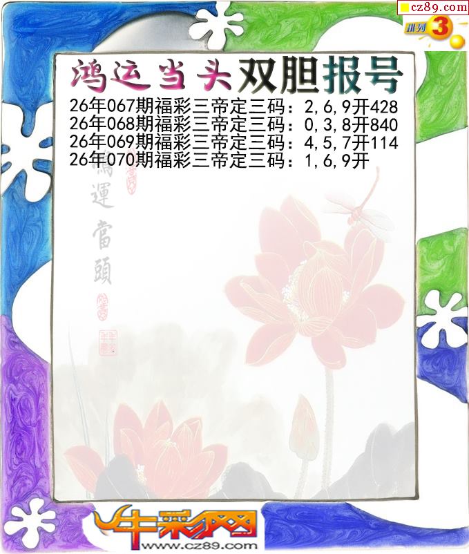 鸿运当头双胆报号070期体彩P3图谜