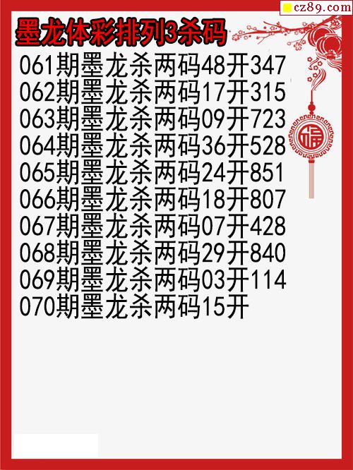 26年070期墨龙体彩排列3杀码图