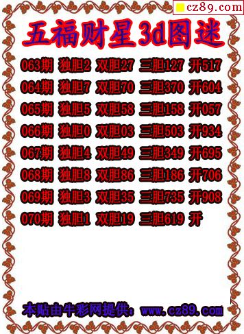 五福财星三胆2026070期3d图谜(原创)