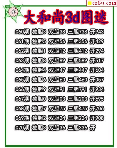 大和尚三胆2026070期3d图谜(原创)