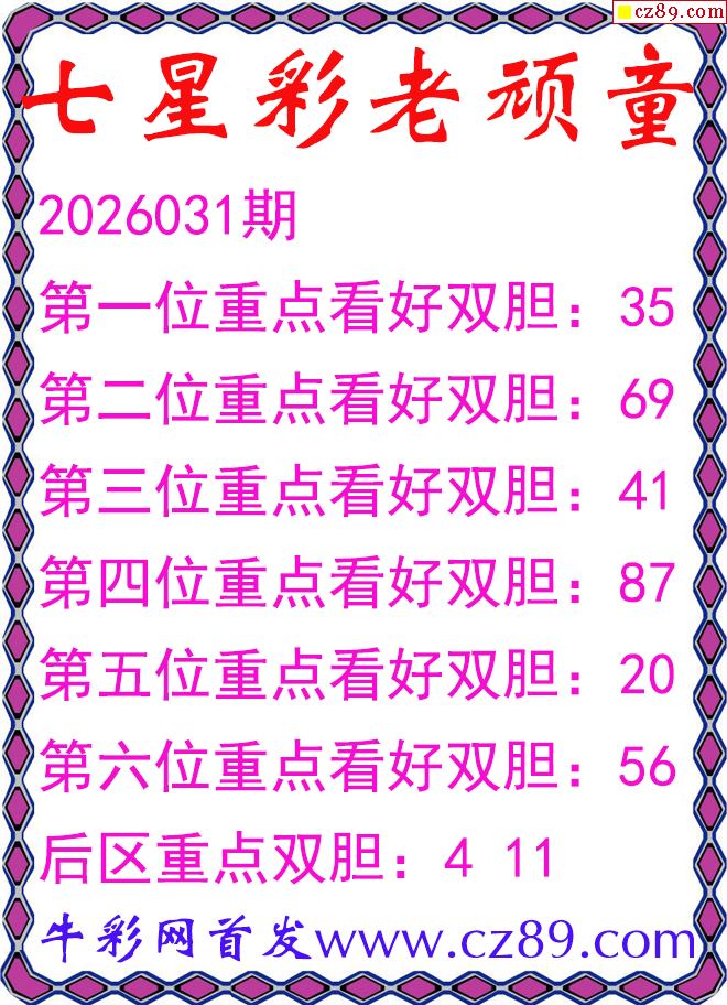 七星彩2026031期老顽童双胆图谜