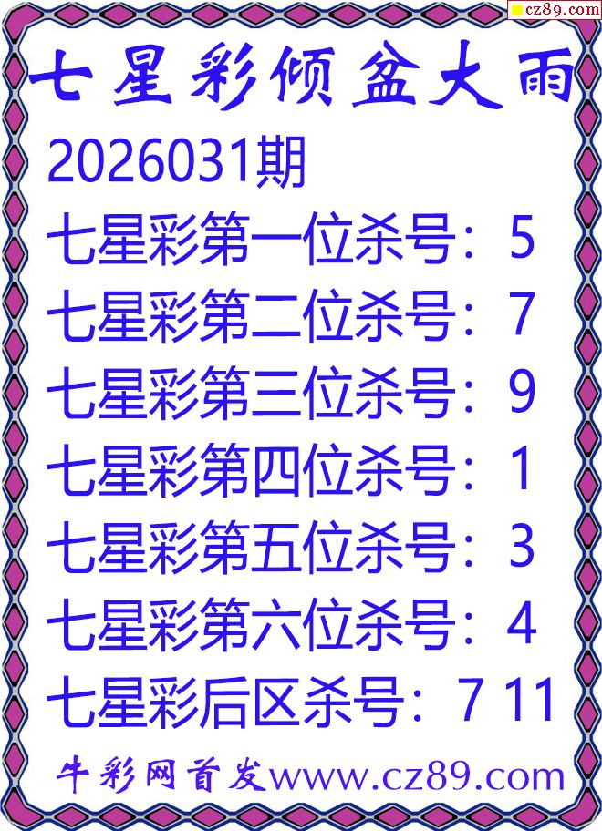 七星彩2026031期倾盆大雨杀号图谜