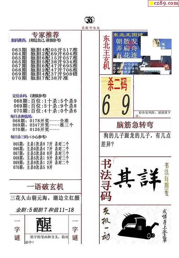 牛彩版3D字谜彩报图26年070期打印版