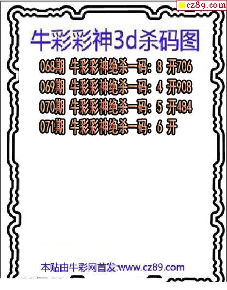 牛彩彩神杀码2026071期3d图谜(原创)
