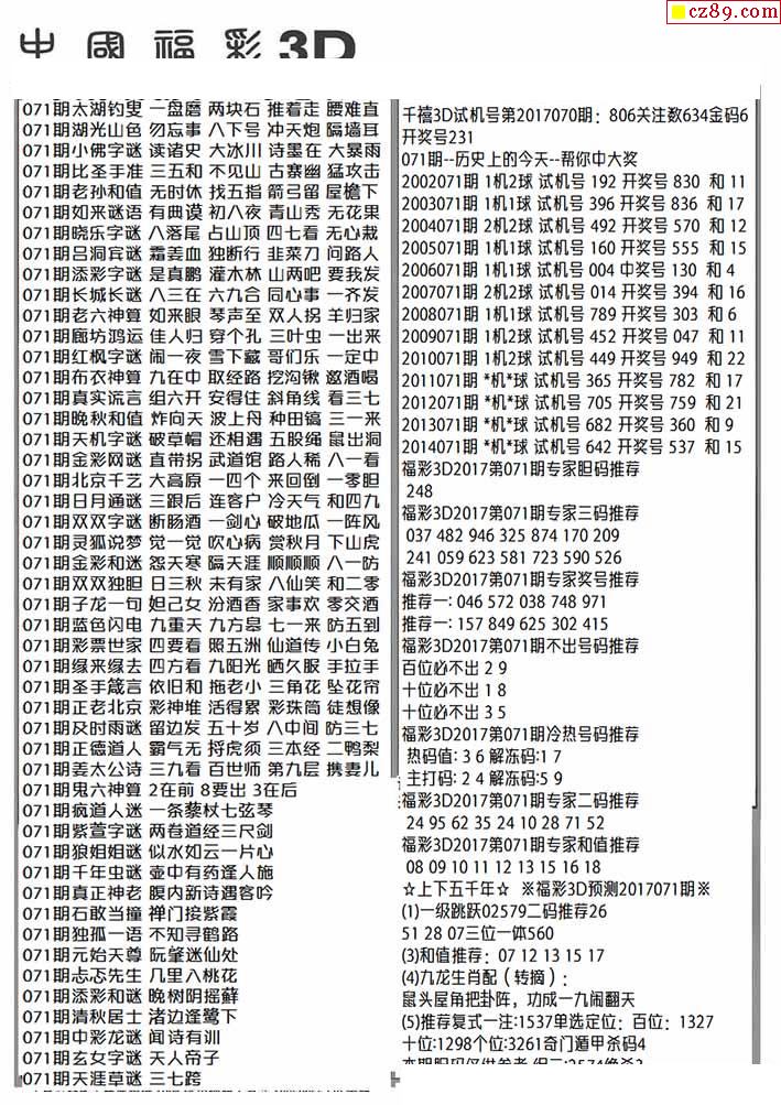 杀手+鑫马快报+字迷汇总26年071期3d图谜