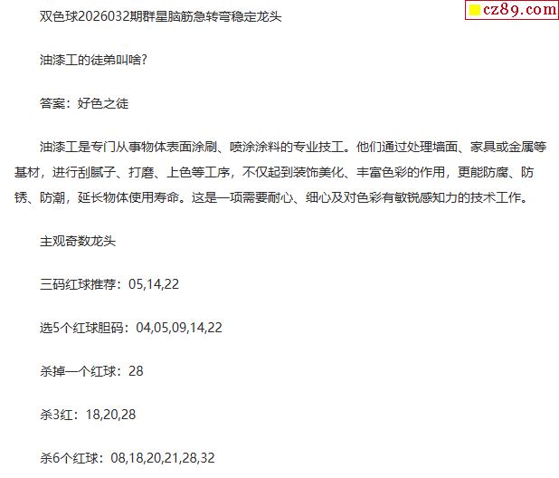26年福彩双色球032期 群星脑筋急转弯定龙头字谜