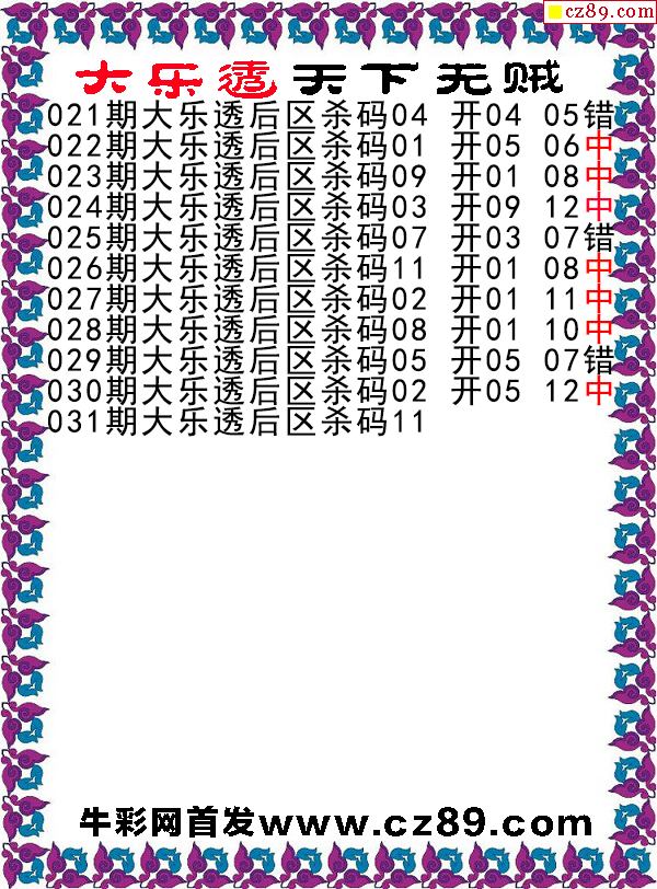 大乐透031期牛彩特邀专家前区后区杀号定胆图表