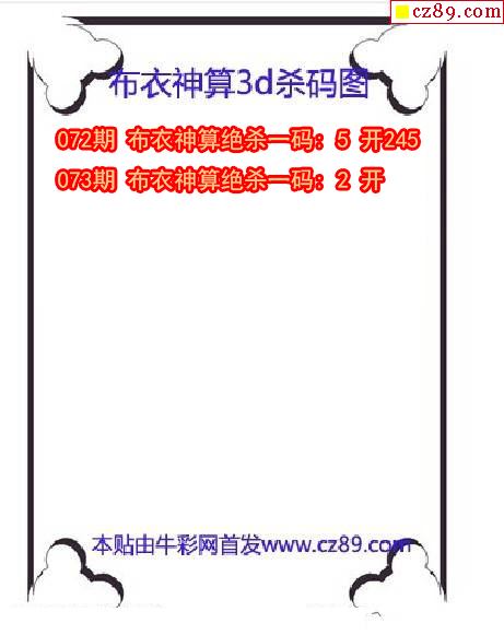 布衣神算杀码2026073期3d图谜(原创)