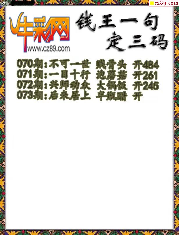 牛彩版3D字谜彩报图26年073期打印版