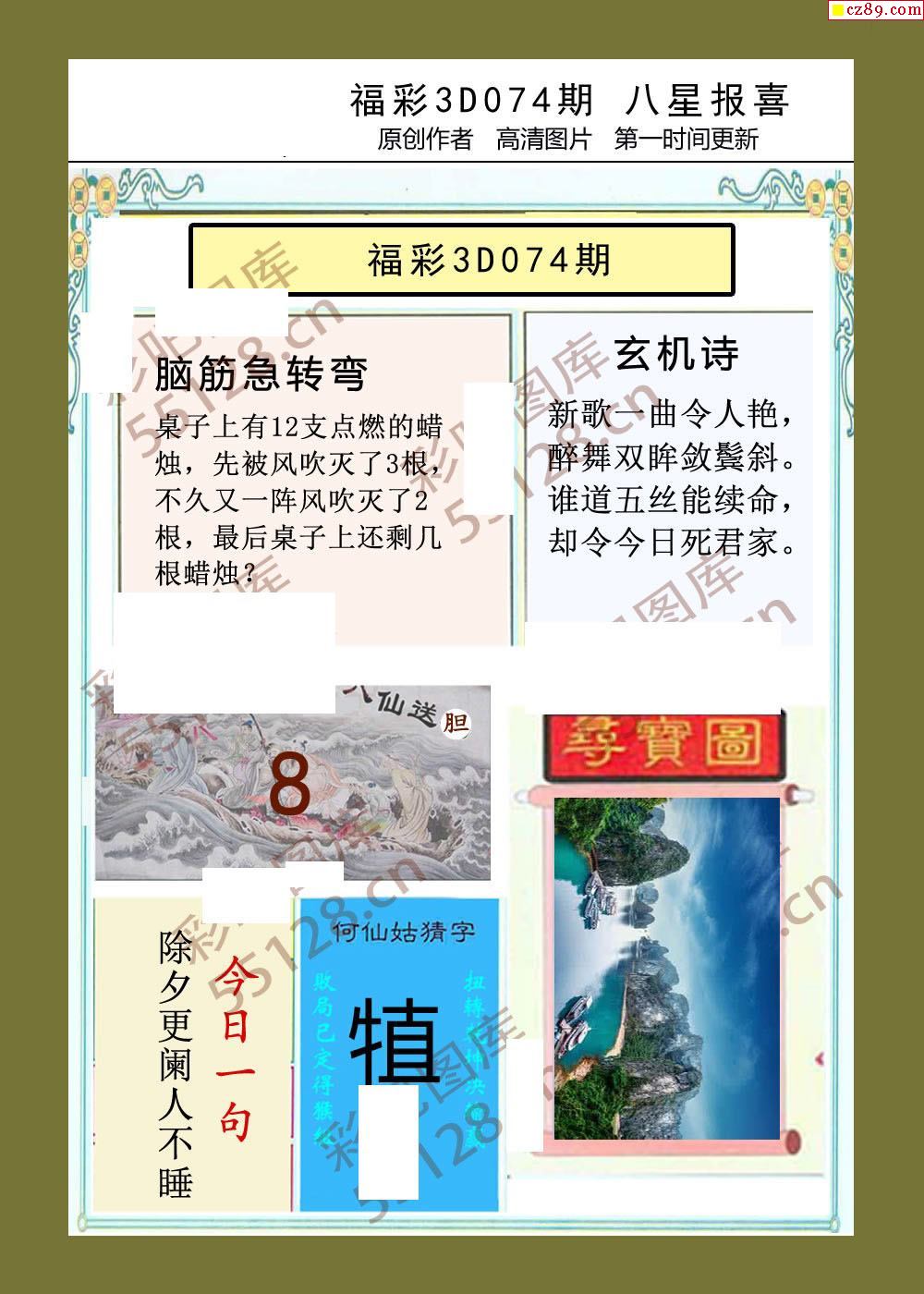八星报喜26年074期福彩3d画谜