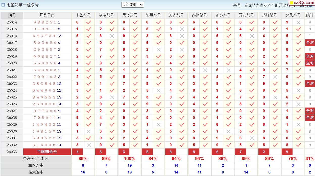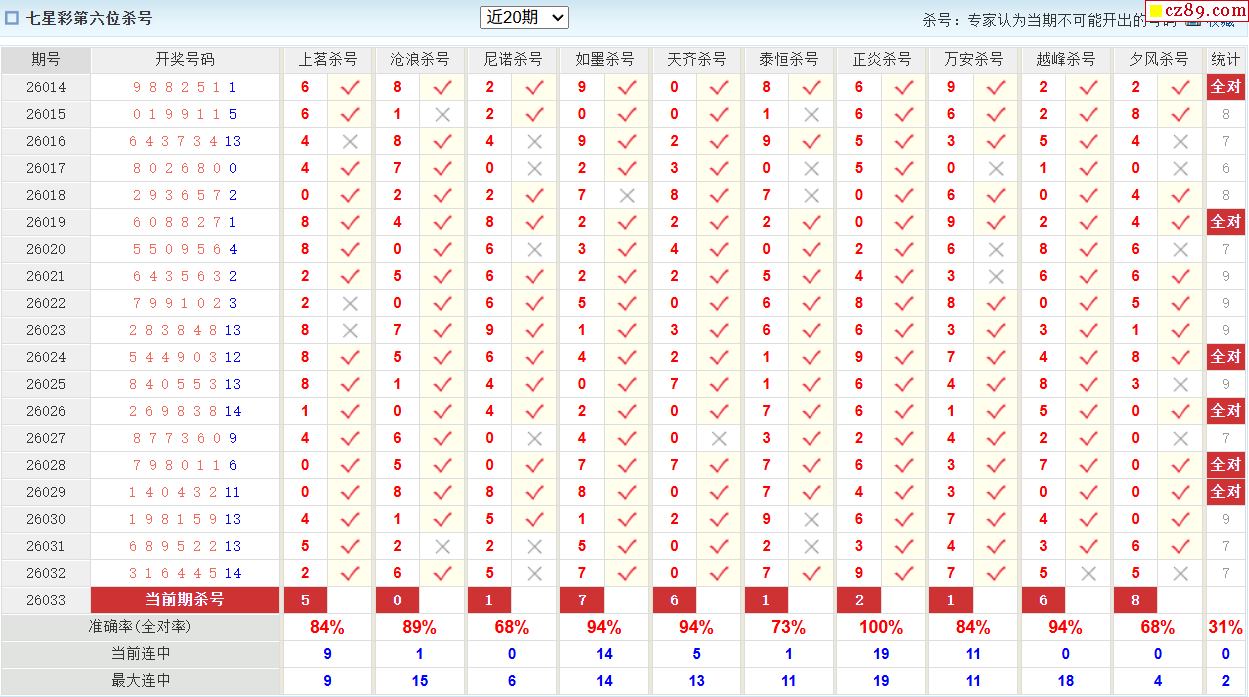 2026年033期七星彩 王牌杀码分析
