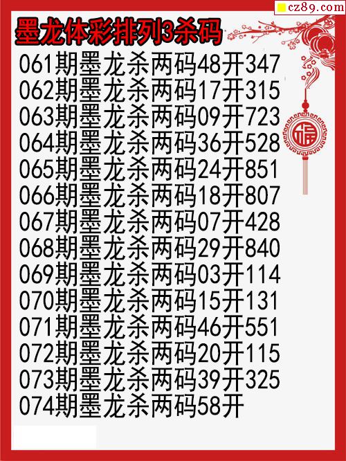 26年074期墨龙体彩排列3杀码图