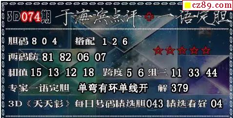 3D 《天天彩》每日号码精选胆043精选看好04