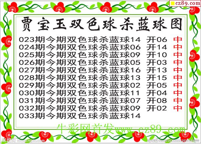 双色球033期 贾宝玉杀蓝号图谜 10中10