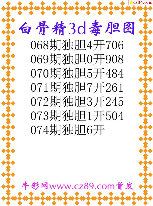 白骨精独胆26074期3d原创图谜