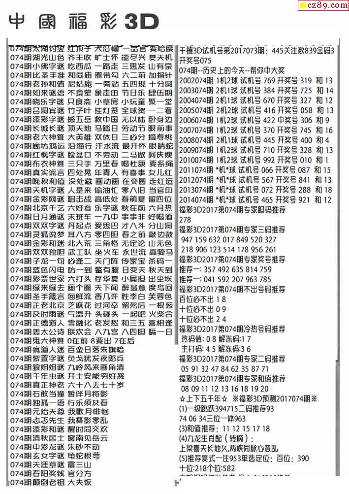 2026074期3D图谜汇总(一)