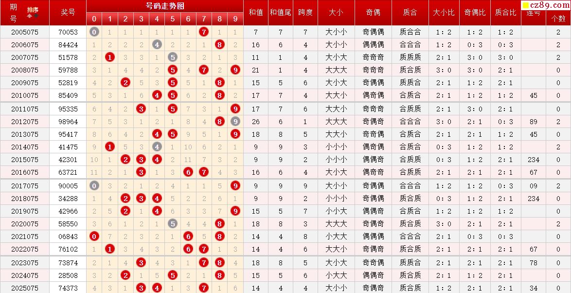 第075期体彩P5历史同期对比