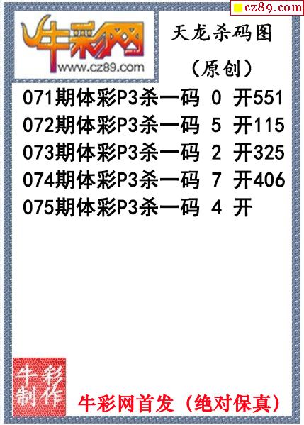 26年075期公孙梦体育彩票P3杀码图