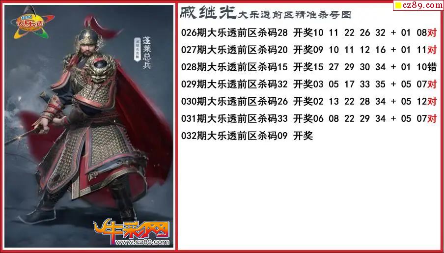 大乐透032期戚继光前区精准杀号图