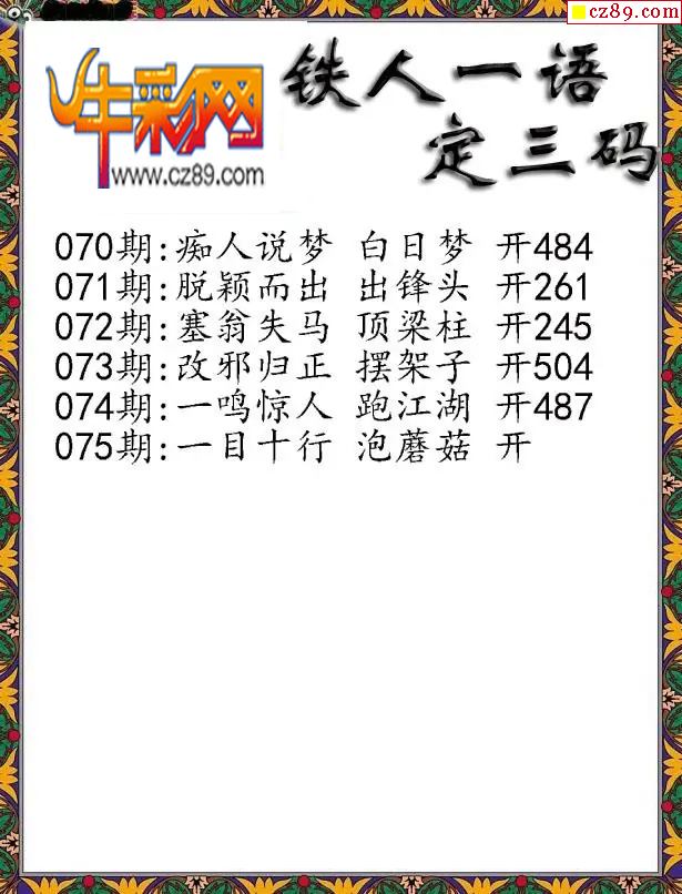 福彩3D2026075期铁人一句定三码字图谜