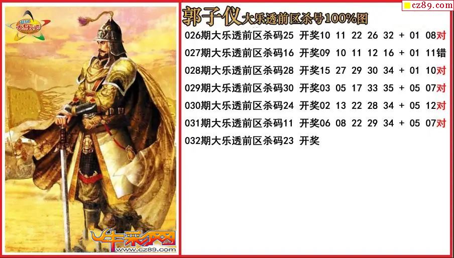 大乐透032期郭子仪前区杀号图