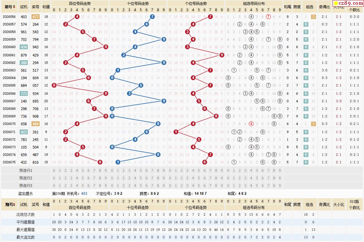 26年076期彩宝贝专家福彩3D杀号定码图表