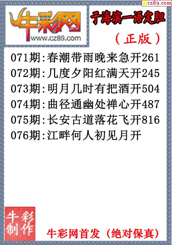 26年076期于海滨一语定胆(原创正版)