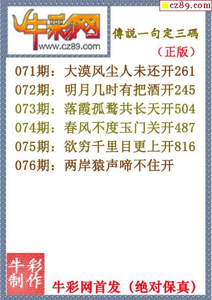 2026年076期七绝圣手3d和尾字谜【牛彩网...