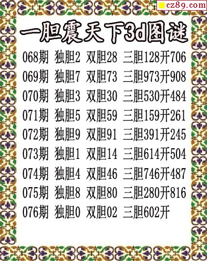 毒胆sheng手2026076期3d图谜(原创)