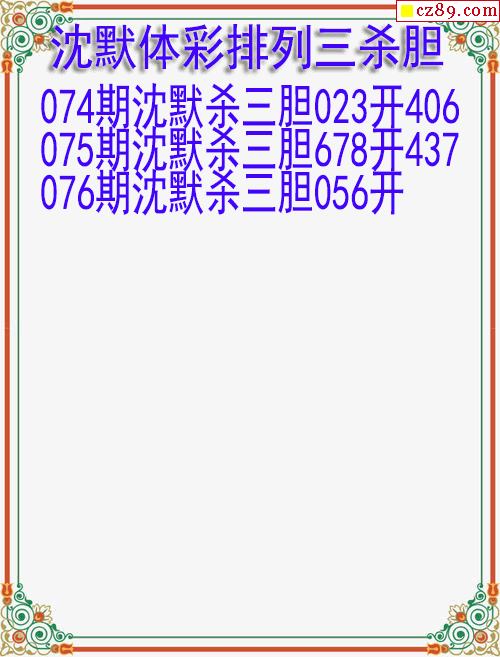 26年076期沈默体彩排列三杀胆图迷