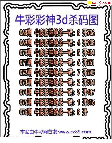 牛彩彩神杀码2026076期3d图谜(原创)