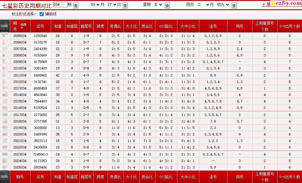 26年体彩七星彩034期 沧海一笑精选单注推荐