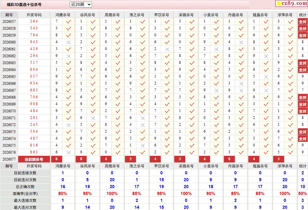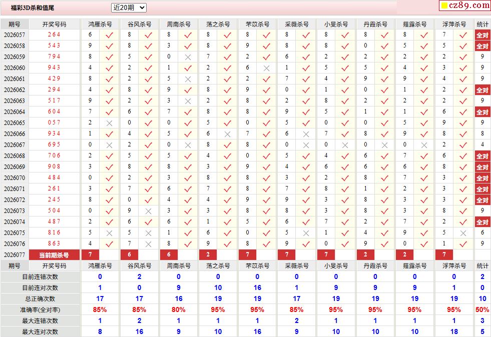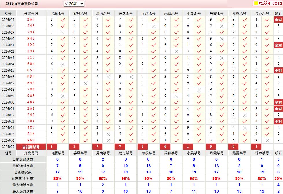 2026年077期福彩3d校验码