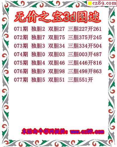 无价之宝送胆2026077期3d图谜(原创)