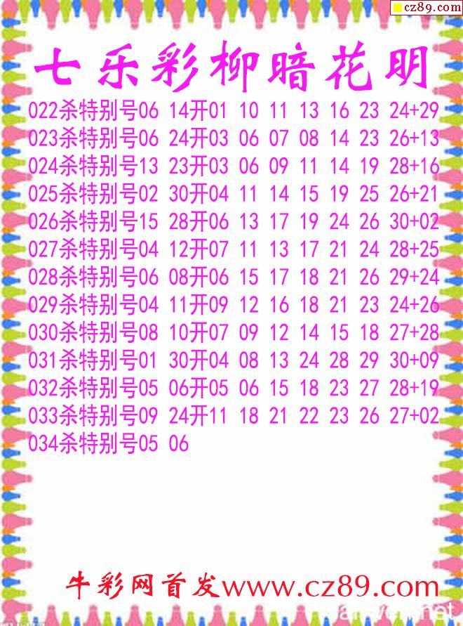 七乐彩2026034期柳暗花明杀码图谜